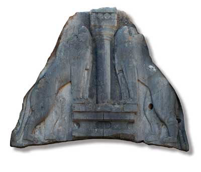 Its setting is superb too, and it is worth taking a few moments to admire the excellent view of the citadel from the tomb. At the north end of the Panagia ridge is the main car park. The path from the ticket office curves up to the Lion Gate, the main entrance to the citadel. The citadel is magnificent to behold. It occupies a low hill nestling between the two towering peaks of Mts. Profitis Ilias and Zara. The Lion Gate is named after the splendid triangular carved limestone slab over the gate showing two lions facing a single column that represents the Royal House of Mycenae. The Lions were still visible when the travel writer Pausanias visited Mycenae in the 2nd century AD. Pausanias also wrote that the colossal walls surrounding the acropolis hill were built by the Cyclopes, that mythical race of one-eyed giants; hence they are called Cyclopean walls. Near the Lion Gate, the Cyclopean wall is about six metres thick and preserved to over eight metres high. Do not think, though, that the fortifications at Mycenae were all built in one go; they were actually raised in three separate stages.